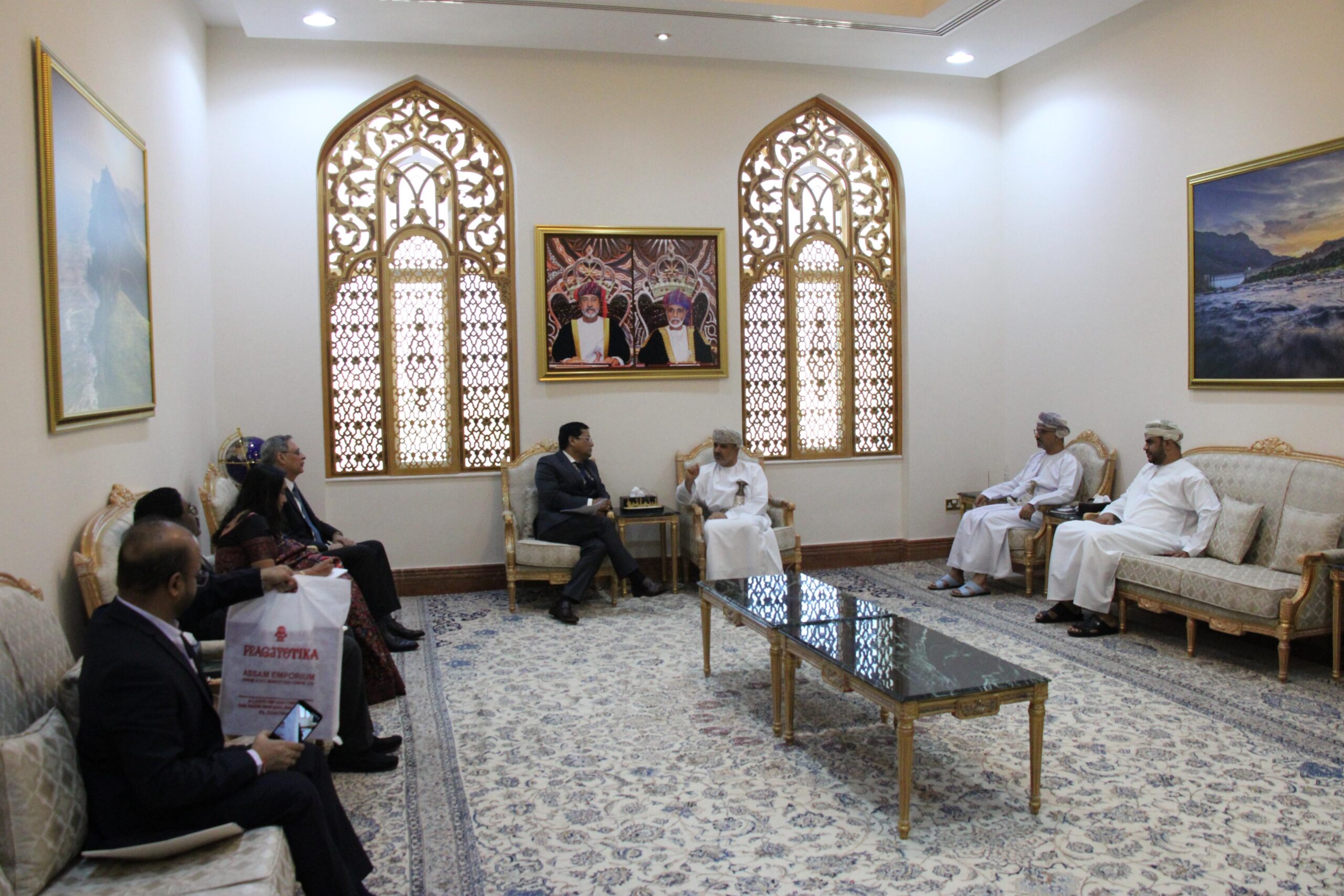 استقبل معالي المهندس سعيد بن حمود المعولي، وزير النقل والاتصالات وتقنية المعلومات اليوم بمكتبه بديوان عام الوزارة بالخوير، معالي السيد سارباناندا سونوال، وزير الموانئ والشحن والممرات المائية بجمهورية الهند.