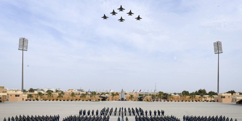 بعدها قدمت عدد من الطائرات المقاتلة بسلاح الجو السلطاني العُماني استعراضًا جوياً في سماء ميدان الاحتفال تجسيدًا لما تحقق لسلاح الجو السلطاني العُماني من تحديث وتطوير في قدراته التسليحية والتدريبية والبشرية، وما يحظى به من رعاية واهتمام ساميين من لدن حضرة صاحب الجلالة السلطان هيثم بن طارق المعظم القائد الأعلى أيده الله، بعدها عزفت فرقة الموسيقى السلام السلطاني.