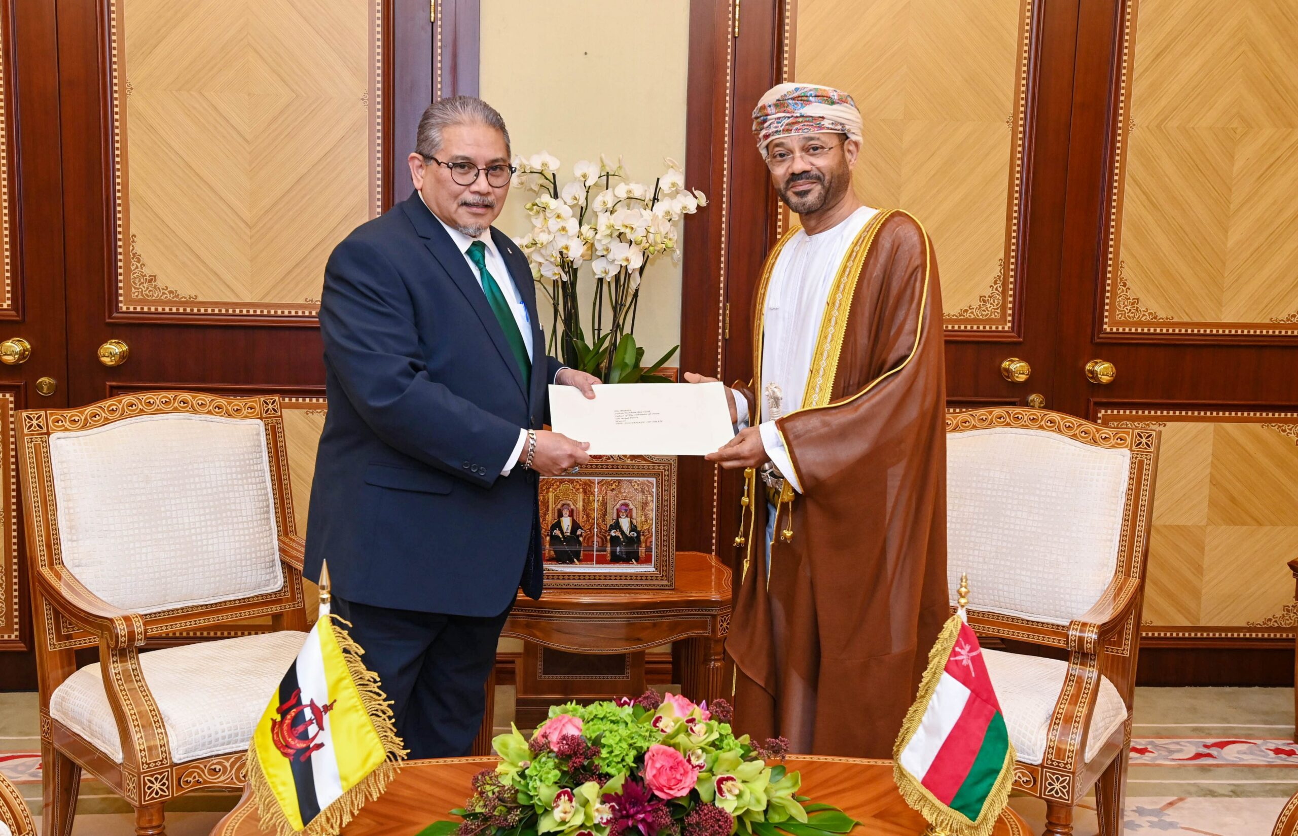 تسلم الرسالة معالي السيد بدر بن حمد البوسعيدي وزير الخارجية، خلال استقباله معالي داتو إيروان الوزير الثاني للشؤون الخارجية في بروناي دار السلام، الذي يقوم بزيارة رسمية إلى سلطنة عُمان.