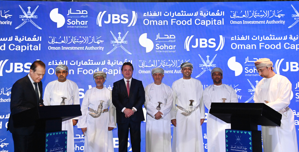 وقّعت الشركة العُمانية لاستثمارات الغذاء التابعة لجهاز الاستثمار العُماني على شراكة استراتيجية مع شركة JBS البرازيلية، إحدى أكبر الشركات العالمية في قطاع الأغذية التي ستقوم بتشغيل منشآت جديدة في سلطنة عُمان لإنتاج اللحوم الحمراء والدواجن محليًّا، وإنشاء مركز تصدير إقليمي نحو الأسواق العالمية بإجمالي استثمار يبلغ 57.7 مليون ريال عماني ( 150 مليون دولار أمريكي).
