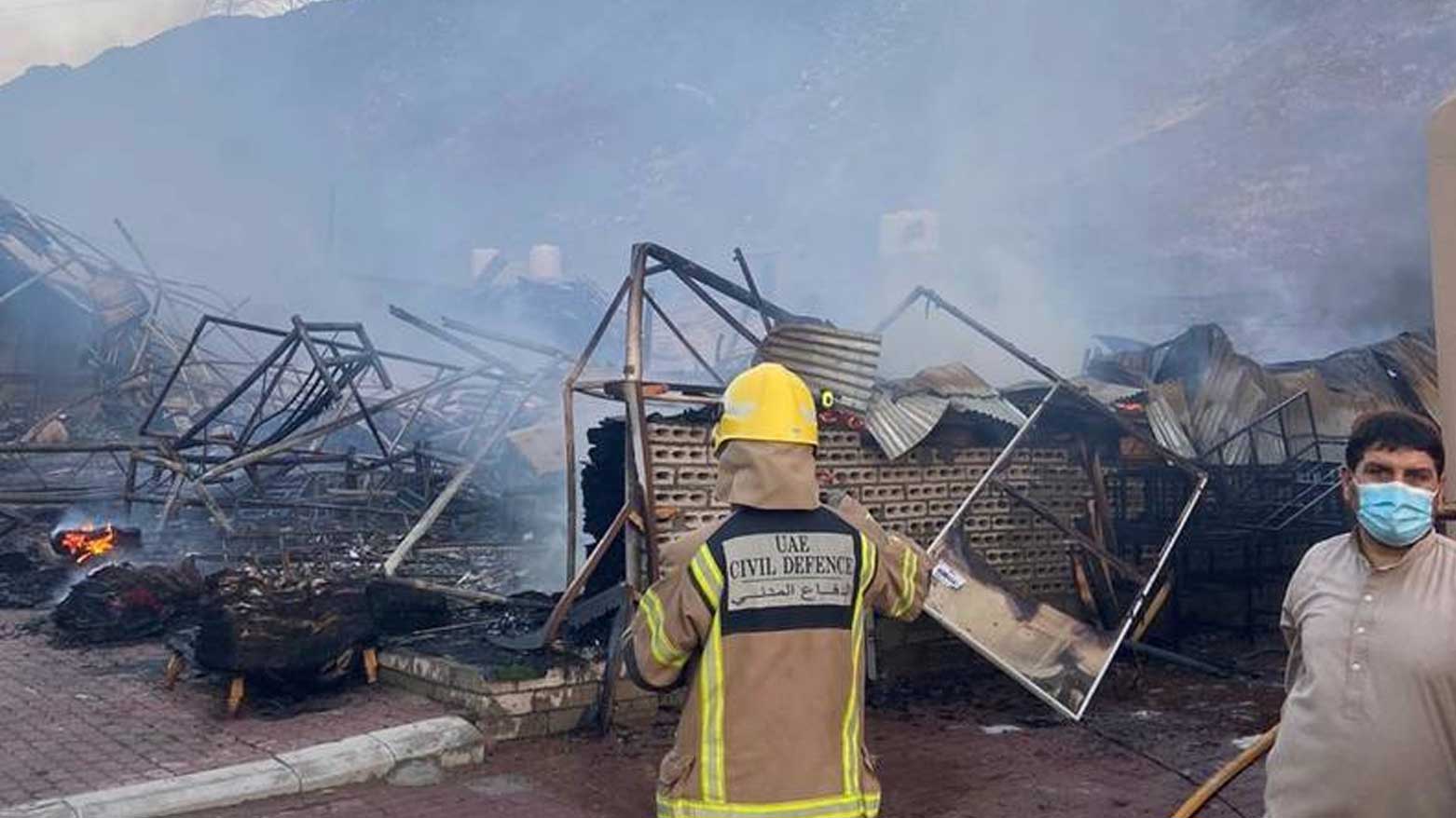 السيطرة على حريق في منطقة صناعية بالفجيرة الإماراتية إثر شظايا اعتراض مسيّرة