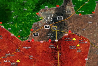 و على نفس الصعيد، سيطرة قوات درع الفرات المدعومة من الجيش التركي، على جبل عقيل، و مستشفى الباب القابع غربي المدينة و السكن الشبابي و الدوار الغربي و الملحق العسكري و طردت تنظيم داعش الأرهابي الى داخل المدينة المحاصرة.