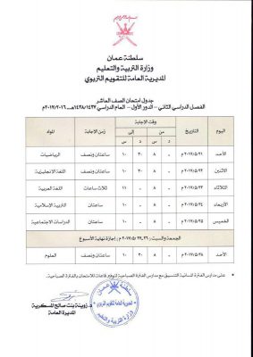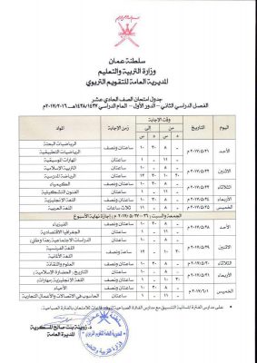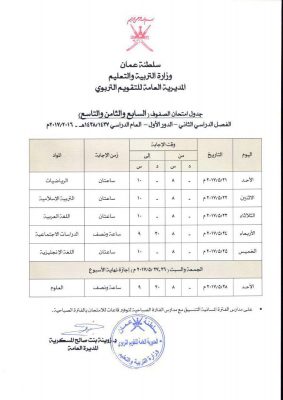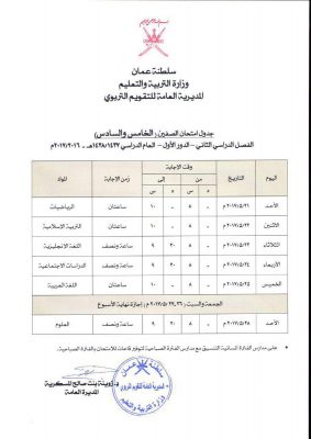 جداول امتحانات صفوف النقل من الخامس إلى الحادي عشر