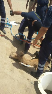 بالصور.. إنقاذ جمل سقط في خزان ماء بالسيب