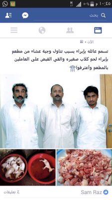هذا وتداولت شبكات التواصل هذا الخبر والذي جاء نصه كالتالي: “تسمم عائلة بإبراء بسبب تناول وجبة عشاء من مطعم بإبراء تتكون من لحم كلاب صغيرة وألقي القبض على العاملين بالمطعم واعترفوا”