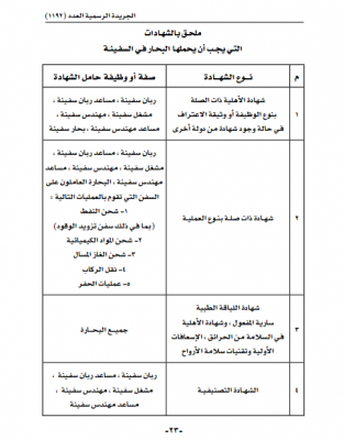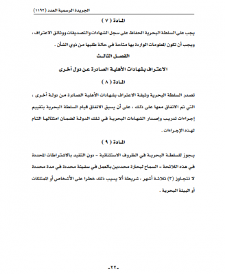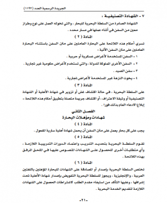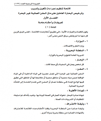 قرار وزاري: إصدار لائحة تنظيم إجراءات تأهيل وتدريب وترخيص البحارة العاملين على متن السفن العمانية غير المبحرة