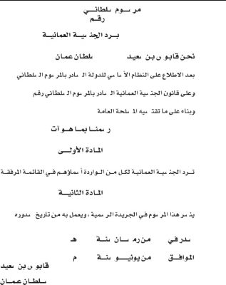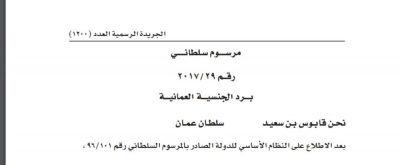 مرسوم سلطاني برد الجنسية العُمانية ل17 شخص