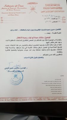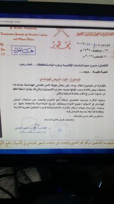 بعد انتشار البيض المسموم في بعض دول العالم، اتخذت وزارة البلديات الأقليمية وموارد المياة كافة الإجراءات الاحترازية وذلك لضمان سلامة بيض المائدة المستورد من الدول الأوروبية، وخلوها من أي مسببات مضرة بصحة الإنسان.