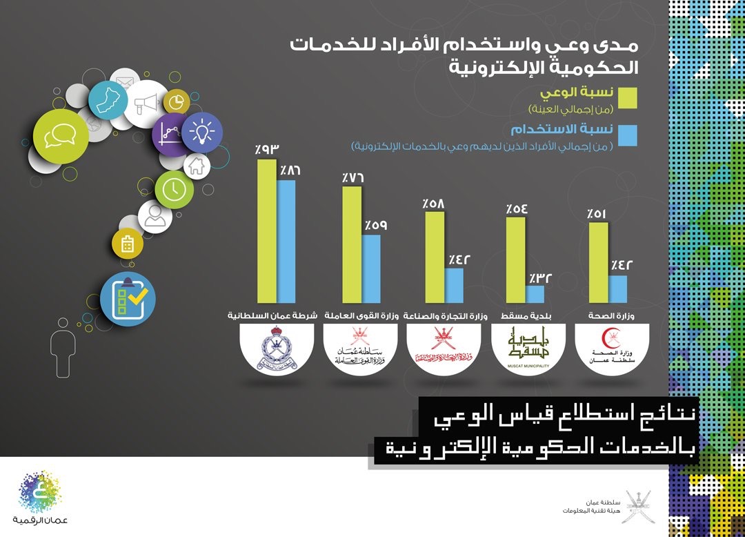 قامت ” هيئة تقنية المعلومات ” بعمل استطلاع لمعرفة مدى وعي واستخدام الأفراد للخدمات الحكومية الإلكترونية.