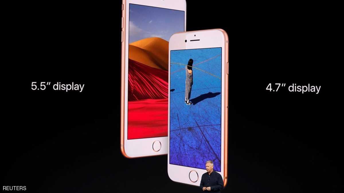 وكشف الرئيس التنفيذي لأبل أن هاتف آيفون 8 مزود بشاشة 4.7 بوصة، وهاتف آيفون 8 بلس شاشته 5.5 بوصة كما انه مجهز بشاحن لاسلكي من نموذج (كيو آي)”.