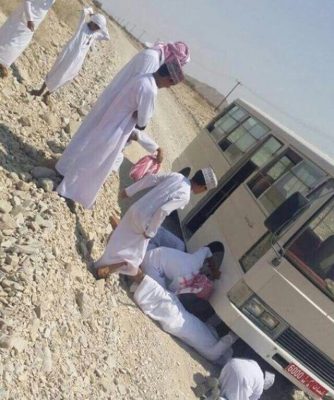وعند سؤاله عن حال ابناءهم في ذهابهم لمدارسهم قال ابراهيم : يخرج الطلاب من منازلهم الى مدرستهم في وادي قريات عند الساعة السادسة صباحا ويصلون بعد ساعة ونصف اي الساعة السابعة والنصف وهي فقط مسافة ٢٦ كيلو مترا ناهيك عن الأتربة والغبار والربو الذي يصيبهم بسبب الغبار ولعل اتساخ ملابسهم عند وصولهم المدرسة لا نحتاج لوصفه وشرح لحاله ونترك لكم المجال ان تتخيلوا ذلك اضف الى ذلك في حال تعطل الحافلات نتيجة التردد المستمر في الطريق الوعر فإنهم يتاخرون عند مدارسهم ويتم سحب الحافلة بطلابها في الطريق الوعر بواسطة سيارات الدفع الرباعي.