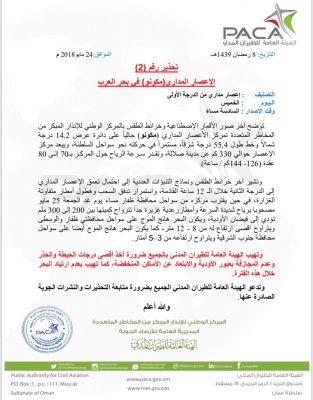 تحذير رقم (2) الاعصار المداري مكونو في بحرب العرب