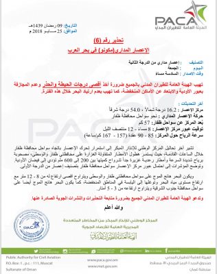 تحذير رقم (6) الاعصار المداري مكونو في بحرب العرب