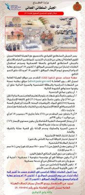الجيش السلطاني العُماني يعلن عن فتح باب التجنيد للمواطنين ( لذكور والإناث )