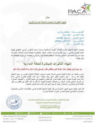 الأرصاد العمانية تصدر بيان إنتهاء التأثيرات المباشرة للحالة المدارية لبان.