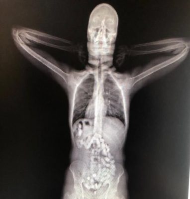 ضبط شخص من جنسية آسيوية بتهمة حيازة المواد المخدرة بقصد الاتجار بها، إذْ ضُبط بداخل أحشائه