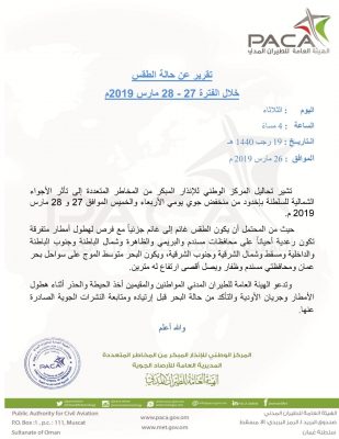 تأثر الأجواء الشمالية للسلطنة بإخدود من منخفض جوي يومي الأربعاء والخميس