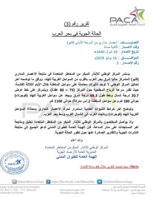 تقرير رقم (3): تطورات الحالة المدارية “فايو” على بحر العرب
