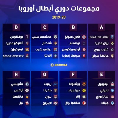 وهج الخليج-مسقط رسمياً قرعة دور مجموعات دوري أبطال أوروبا لموسم 2019 - 2020 م