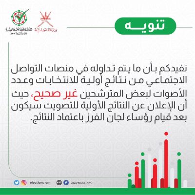 ونفى صحة ما يتداول في وسائل التواصل الإجتماعي من نتائج أولية للانتخابات وعدد الأصوات لبعض المرشحين غير صحيحة.