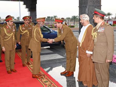 ‏بعد ذلك غادر حضرة صاحب الجلالة السلطان قابوس بن سعيد المعظم القائد الأعلى للقوات المسلحة – حفظه الله ورعاه – ميدان الاستعراض تحفّهُ عناية الرحمن.