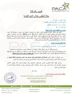 الأرصاد تصدر تقرير رقم 3 حول الحالات الجوية في السلطنة وبحر العرب