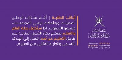 قالت وزارة التربية والتعليم عبر حسابها الرسمي في تويتر انها سنُكمِل رحلة العلم والتعلم طريق التعليم عن بُعد.