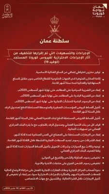 السلطنة تقر حزمة من الإجراءات والتسهيلات للتخفيف من آثار فيروس كورونا