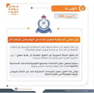 وهج الخليج-مسقط عزل صحي تام لولاية مطرح ابتداء من اليوم وحتى إشعار آخر