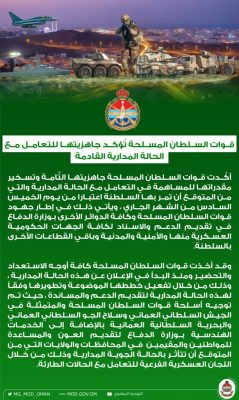 قوات السلطان المسلحة تُؤكد جاهزيتها للتعامل مع الحالة المدارية القادمة .