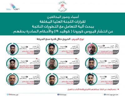 أسماء وصور المخالفين لقرارات اللجنة العليا والأحكام الجزائية الصادرة بحقهم