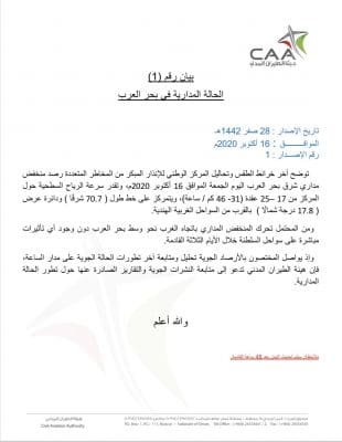 الأرصاد: تصدر بيان رقم 1 حول الحالة المدارية في بحر العرب