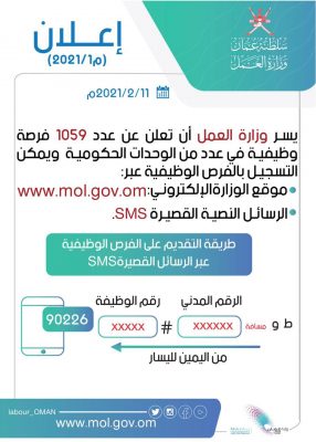 وزارة العمل تعلن عن توفير 1059 فرصة وظيفية في عدد من الوحدات الحكومية