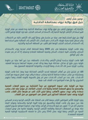 وهج الخليج- مسقط أصدرت وزارة الإسكان والتخطيط العمراني توضيحًا بشأن أراضي حيل فرق بولاية نزوى.