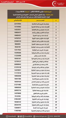 قالت وزارة الصحة عبر حسابها الرسمي في تويتر أنه إلحاقًا إلى الإعلان الصادر عن الوزارة وبالتنسيق مع وزارة العمل والخاص بإجراء المقابلات الشخصية للمواطنين المتقدمين لشغل وظيفة: ( ممرض عام أ- ممرض عام ) الشاغرة بالمؤسسات الصحية التابعة للوزارة عليه نود التنويه بأنه على المذكورين أدناه الحضور لإجراء المقابلة الشخصية بمركز التطوير المهني المستمر التابع للمديرية العامة التنمية الموارد البشرية بالوطية بالقرب من مبنى كلية عمان لطب الأسنان حسب التاريخ والتوقيت المحدد بالإعلان .