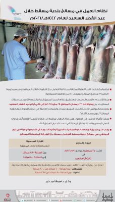 نشرت بلدية مسقط منشورًا عبر حسابها الرسمي في تويتر عن نظام العمل في مسالخها خلال عيد الفطر المبارك .