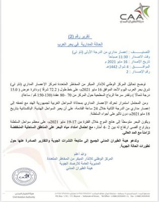 وهج الخليج-مسقط الأرصاد العُمانية تصدر تقرير رقم (2) حول الحالة المدارية في بحرالعرب تاوتي