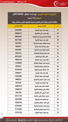 أعلنت وزارة الصحة بالتنسيق مع وزارة العمل للمواطنين المبينة أسماؤهم فيما بعد والذين سبق لهم ان تقدموا بطلباتهم على ضوء الإعلان لشغل وظيفة مهندس معدات طبية، بأن عليهم الحضور لإجراء الاختبار التحريري في المكان والزمان الموضحين بالإعلان