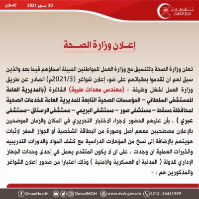 الصحة: على المتقدمين لوظيفة مهندس معدات طبية الحضور لإجراء الاختبار التحريري