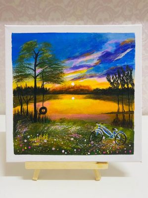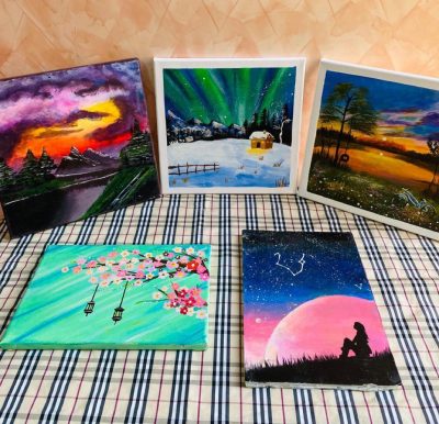 وتابعت قائلة: “من أفضل أوقات الرسم لدي فترة الصباح أو الليل” مبينة أن الفنان يعبر في رسوماته عن الانفعالات التي بداخله كما أنها قامت باستغلال فترة الحجر في الرسم وكانت فرصة في تجربة أنواع وأساليب مختلفة في الرسم منها رسم المناظر الطبيعية.