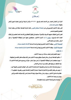 الاعلان عن موعد إجراء الاختبار التحريري لوظيفة “معاون ادعاء عام”