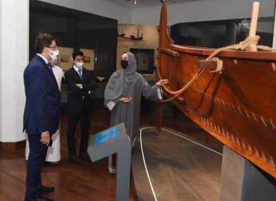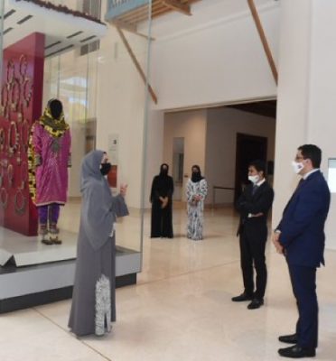 زار معالي الدكتور أحمد عوض بن مبارك وزير الخارجية وشؤون المغتربين بالجمهورية اليمنية الشقيقة المتحف الوطني ، وتجوَّل الضيف والوفد المرافق له في أرجاء المتحف وأروقته؛ حيث استمع إلى شرح تعريفي موجز عنه، وما يحويه من مقتنيات حرفية تجسد مظاهر الحياة العُمانية الأصيلة.