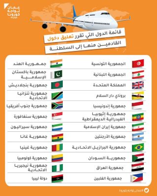 24 دولة تم تعليق القادمين منها إلى السلطنة حتى إشعار آخر