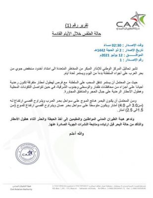 المركز الوطني للإنذار المبكر يصدر تنويهًا
