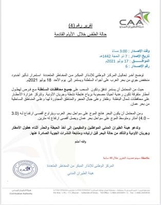 هيئة الطيران المدني تصدر تقريرا حول حالة الطقس خلال الأيام القادمة.