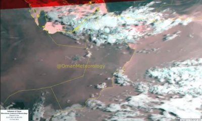 حالة الطقس.. آخر الصور الجوية توضح انتشار سحب متفاوتة الارتفاع على المناطق سواحل بحر عمان ومحافظات مسقط وجنوب وشمال الباطنة والبريمي وأجزاء من الداخلية والظاهرة وشمال الشرقية.
