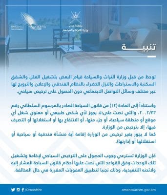 وهج الخليج- مسقط أصدرت وزارة التراث والسياحة ، تنبيهًا فيما يلي نصه :