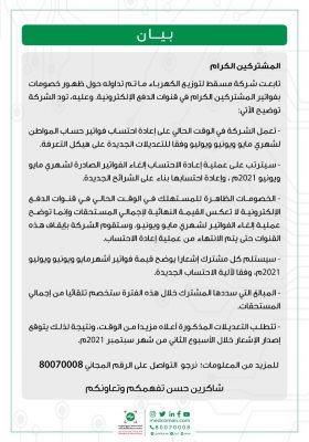 وهج الخليج- مسقط أصدرت شركة كهرباء مسقط بيانًا بشأن ما تم تداوله حول ظهور خصومات بفواتير المشتركين في قنوات الدفع الإلكتروني، فيما يلي نصه :
