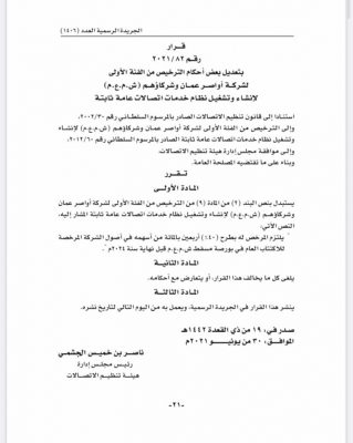 أصدرت هيئة تنظيم الاتصالات 4 قرارات بتعديل بعض أحكام التراخيص لعدد من الشركات، ونشرتها الجريدة الرسمية.