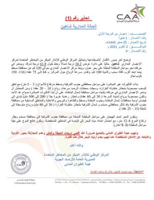 وهج الخليج_ مسقط نشرت هيئة الطيران المدني التحذير رقم 1 للحالة المدارية “شاهين”